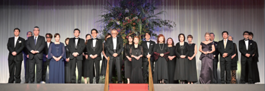 JNAが創設時から開催し続けてきたネイルコンペティションが「全日本ネイリスト選手権」という名称となって東京大会で36名、大阪大会で20名の「総合グランドチャンピオン」が誕生しており、「グランドチャンピオン部門表彰」でその方々を称えました。式典に出席した20名がステージに登壇し、東京大会を代表して1989年チャンピオンの伊藤朋子様、大阪大会を代表して2006年チャンピオンの羽田由紀様に金子実由喜副理事長より表彰状とトロフィーが授与されました。