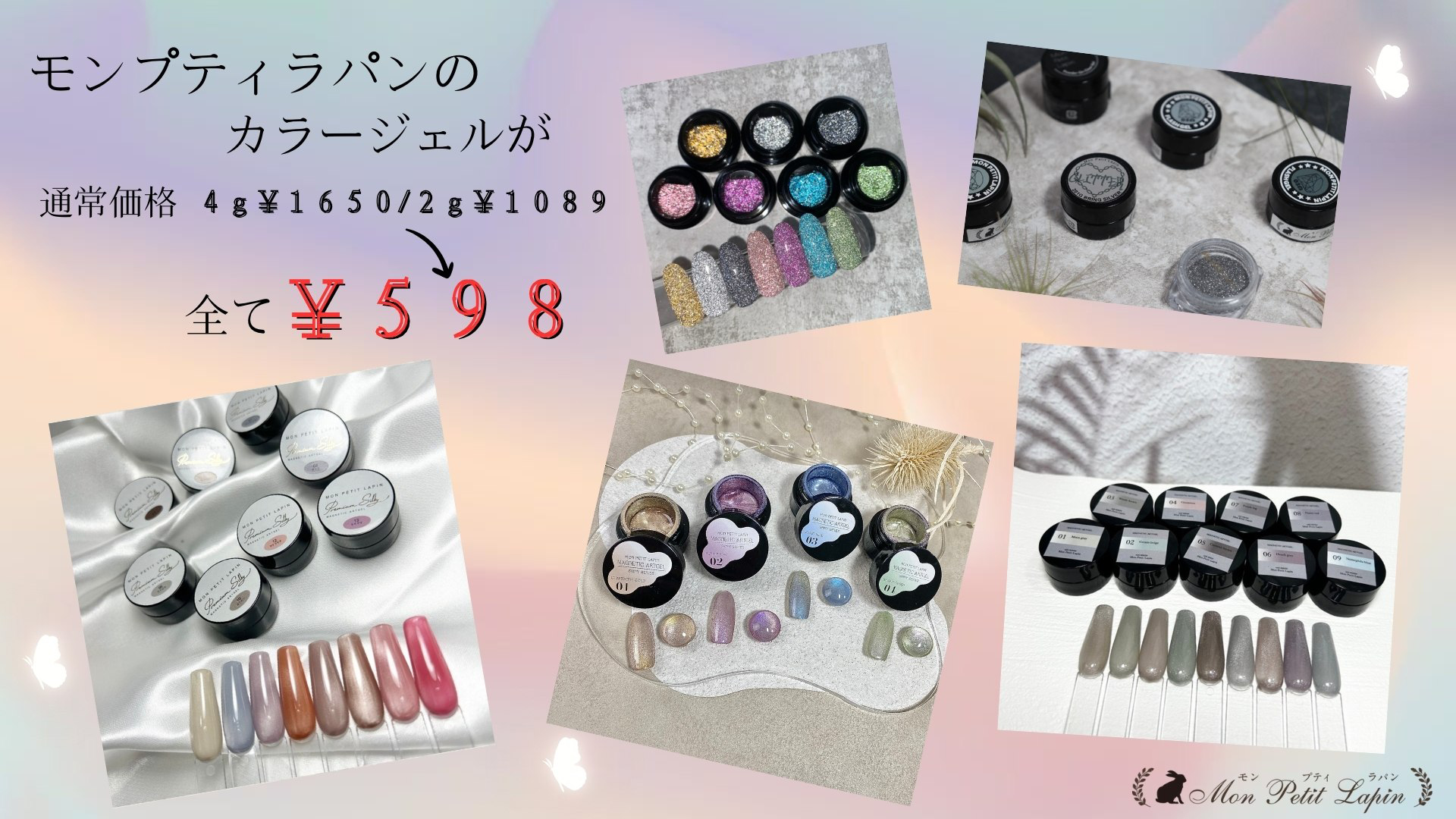 モン・プティ・ラパンの国産カラージェルが通常価格4g¥1650/2g¥1089⇒全て¥598に!