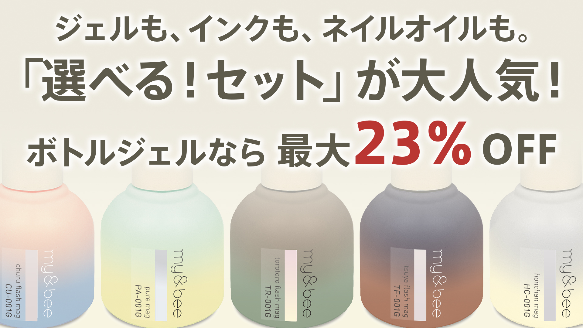 最大23%OFFの、大人気選べるセット!ジェル、インク、ネイルオイル、ハンドクリームなど、ジャンル毎にお好きなアイテムを選ぶだけで大幅割引きが適用!