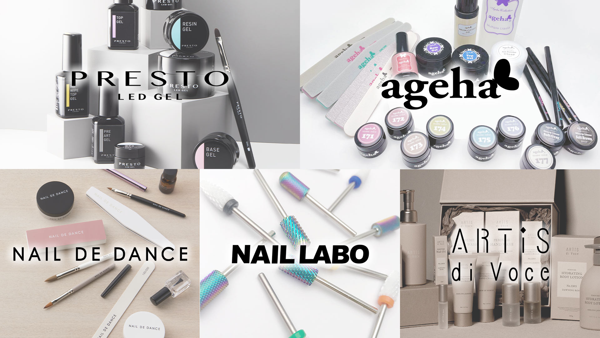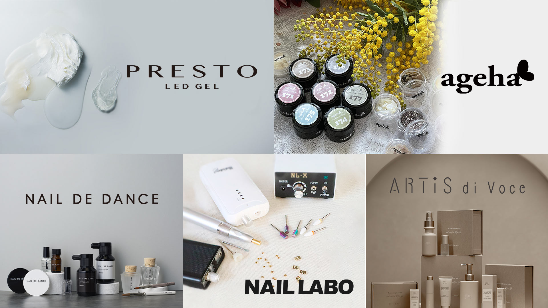 「Nail Labo」「PRESTO」「ageha」「NAIL DE DANCE」「ARTiS」