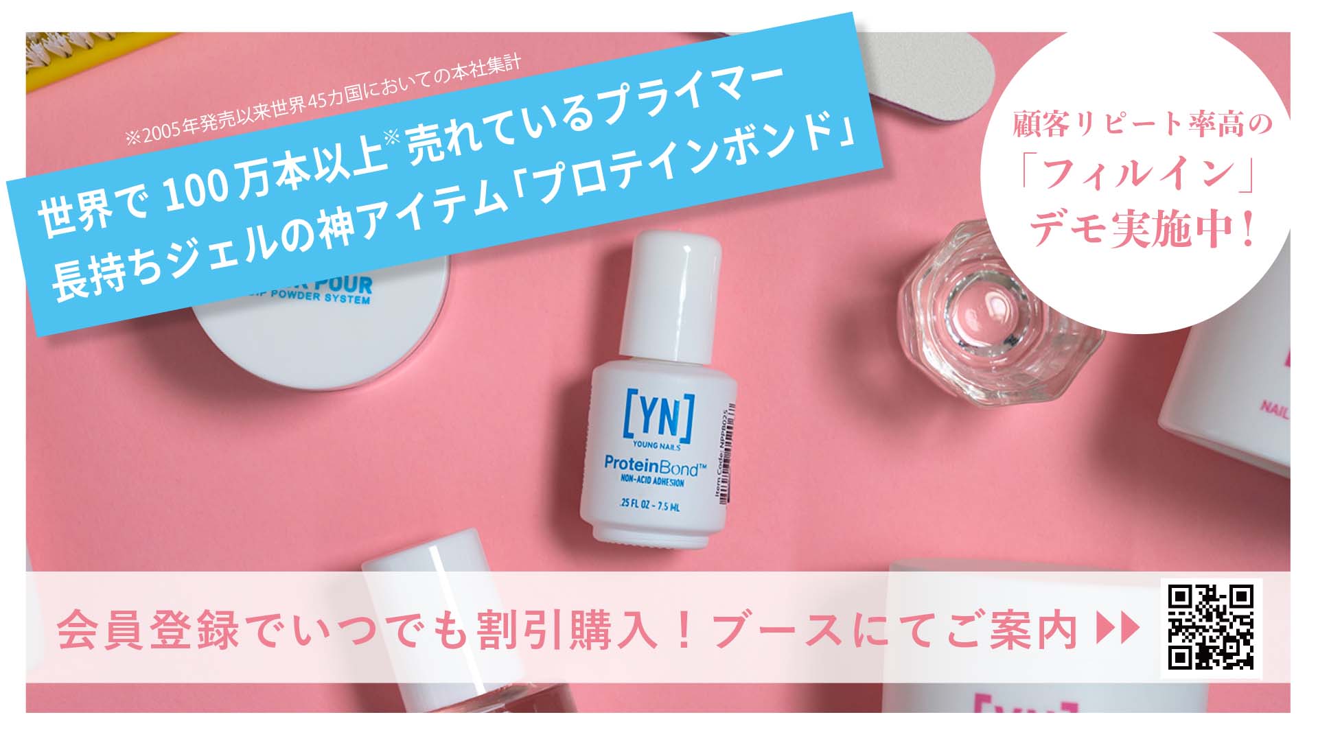 「Young Nails」は世界45か国100万本以上売れているミリオンセラー「プロテインボンド」やリピート率改善フィルイン特化ケラチンファイバージェル発売。爪タイプに合わせ種類豊富な選べる硬さは柔~強まで幅広いジェルラインナップ。