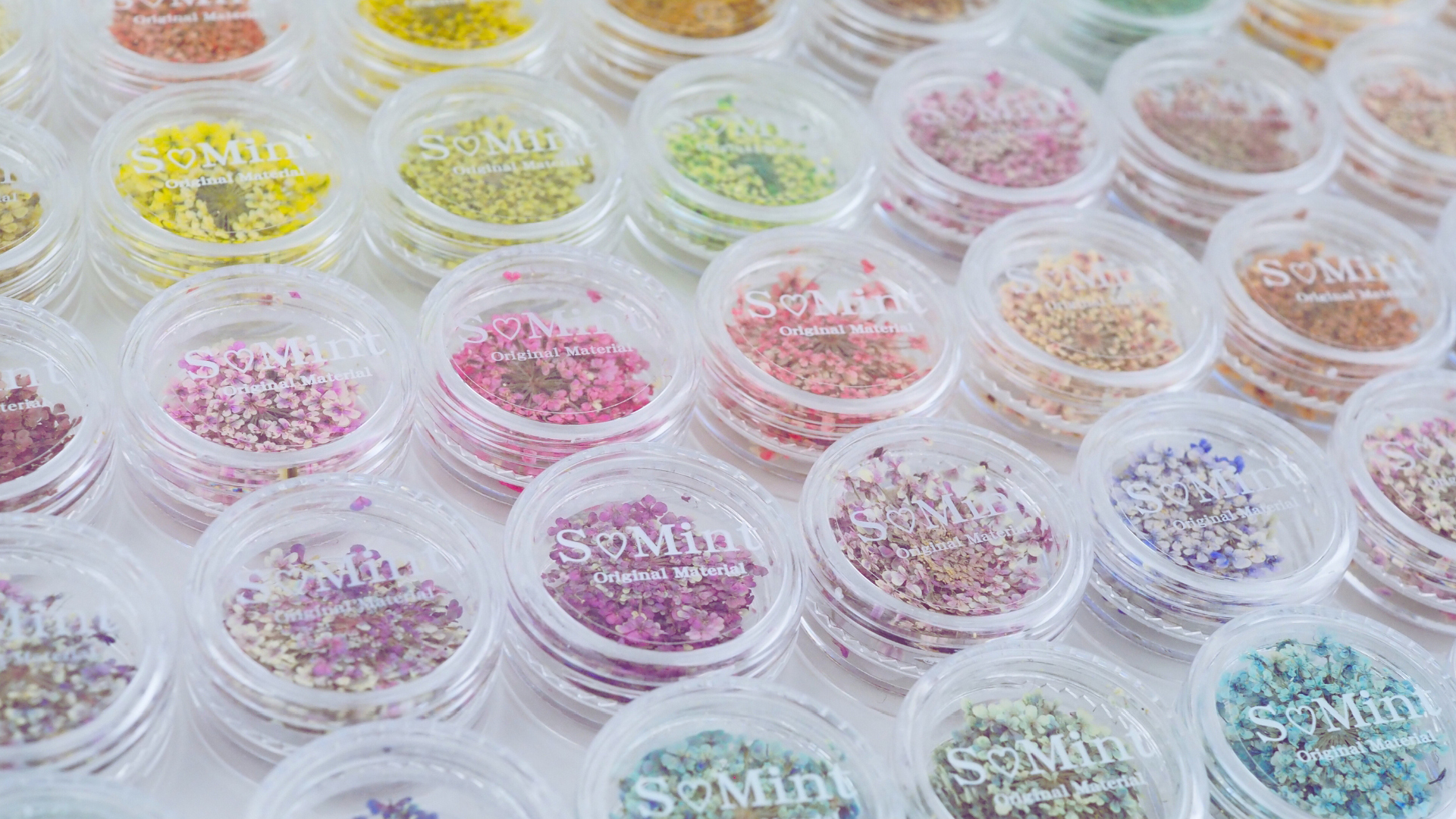 【押し花といえばS♡Mint】高品質の押し花は花材の選定から染め・プレス・調合・詰め作業、全ての工程を社内で手作業で製造しています。他にも素材からこだわった独自調合のグリッター・カラージェルなどのネイルアイテムも多数取り揃えております!通常はECサイト販売が中心なので、リアルに商品を見て購入できるのは展示会ならでは。会場では新商品や通常商品をイベント価格で販売します。是非、S♡Mintブースへお越しください!