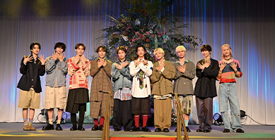 JNA創立40周年アンバサダーに就任したDIYダンスボーカルグループBUDDiiS。BUDDiiSのネイルを担当する「JNAチームBUDDiiS」メンバーであるJNA認定講師10名とオーガナイザーの金子実由喜副理事長、木下美穂里理事が登壇し、その活動を紹介しました。BUDDiiSもお祝いに駆けつけ、ステージでそれぞれのネイルを披露するとともにお祝いメッセージとアンバサダーとしての抱負を語りました。