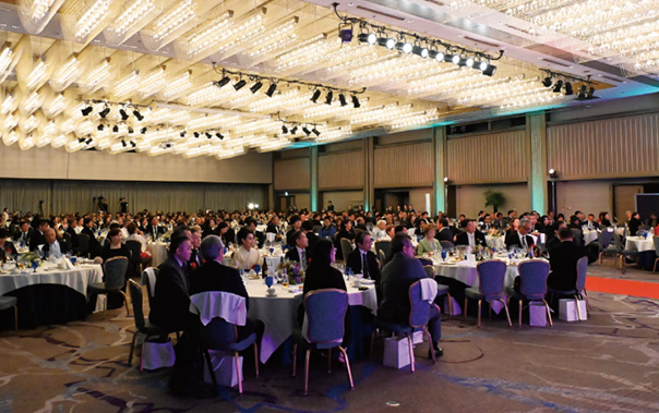 懇親パーティーは、ネイルとネイリストの未来を示した「ネイル未来動画」をステージ上のスクリーンで放映した後、再び役員がステージ上に整列し、仲宗根幸子理事長からのご来場者の皆さまへの感謝のご挨拶からスタート。その後、ご来賓の方々からご祝辞をいただきました。