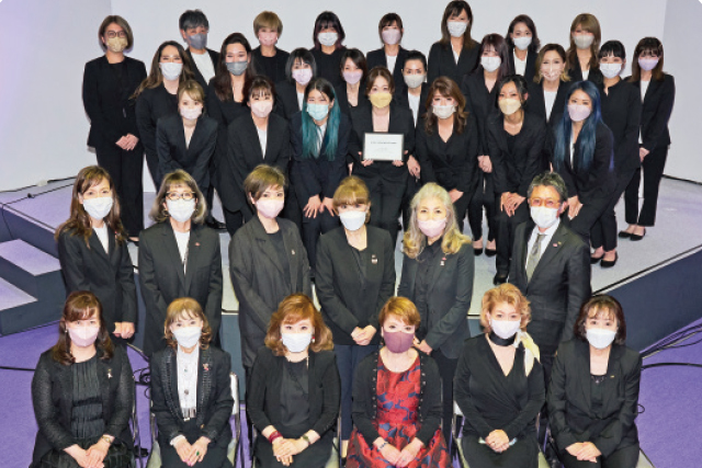 世界最難関のネイル技術試験と呼ばれる「JNA認定講師資格試験」。新たに合格した新認定講師がステージに登壇。兼光アキ子講師委員会委員長の祝辞に続き、今年度から講師会会長を務める高山裕美さんから、代表の石原夕華さんに認定証が授与されました。