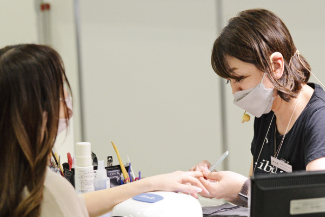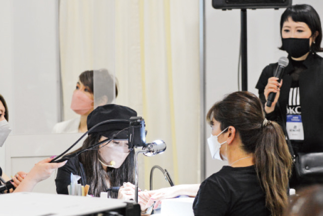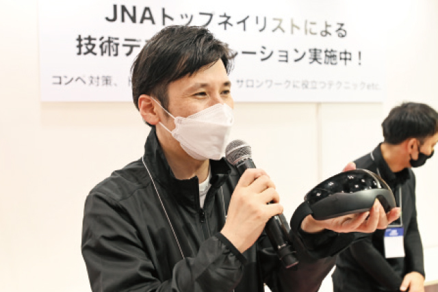 JNAブースではデモコーナーを設け、インスタライブを配信。そこで各出展者の「気になる商品」を紹介したり、サロンワーク向けのアートなどのデモンストレーションを開催。会場に来られない全国のネイルファンに好評でした。