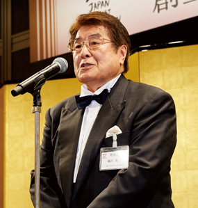 受賞の7名の中からご出席の、ジェシカ・ヴァルトギアン様、滝川和秀様、佐々木健雄様、富榮スワンソン様に、山東昭子名誉会長より表彰状とトロフィーを授与。