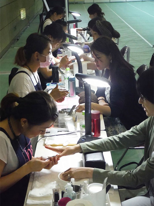 JNA認定講師によるプロッフェショナルなネイルケアが無料で体験することができる技術体験コーナー。担当するネイリストは、全員が北陸地区で活躍しているJNA認定講師。その技術力、接客力の高さは来場者の方にも好評をいただき、常に席は満員となっていました。