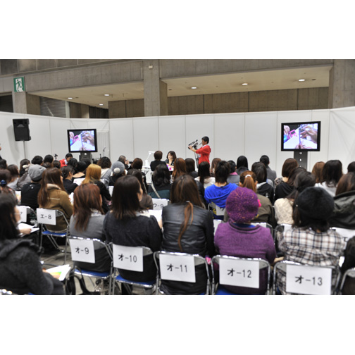 最新ネイルの用具・用材・技術・情報等を学べることから「ネイルカレッジ」と称されたクラスルーム。今年は、70(A・B)・100(A・B)・200人収容の3タイプ・5室が用意されました。1回50分各日5回の開講で、午前と午後の2回に分けて整理券を配布することで、今年も多くの方にご参加いただくことができました。