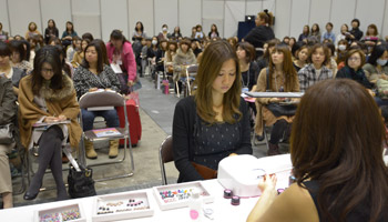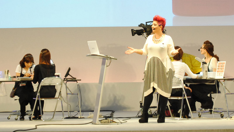 2012年の今年は、東4・5・6ホールの中央奥に設置され、「ネイルパンテオン(ネイルの殿堂)」の名の通り、堂々とした佇まいで、きらめくライトと横長ビッグスクリーンがご来場された方の目を奪っていました。ここでは、トップネイリストたちによる各社プレゼンテーションのほか、ネイルコンペティションで入賞した選手たちを称える表彰式も2日間に渡り実施されました。 表彰式では「タイ国政府観光庁」提供の「サバーイ・タイランドパッケージツアー プーケット3泊5日ペア旅行」が「全日本ネイリスト選手権プロフェッショナル部門グランドチャンピオン」に授与された他、「世界ネイリスト選手権チャンピオン」には「スワロフスキー・ジャパン社」提供の「スペシャルティアラ」が授与されました。また、2日目には、モデル・ビューティジャーナリストSAKURAさんをゲストに迎え、JNAトレンドプロジェクトチームによる、サロンワークに活かせるネイルのデザインを提案するステージ「TOKYO NAILS COLLECTION 2013 S/S」も行われました。