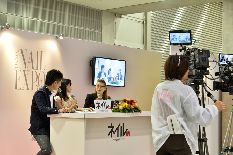 東京ネイルエキスポ2013の魅力を会場に来られない皆さん、そして全世界に発信していくweb放送「ネイルTV」。今年も多彩なゲストや会場全体を飛び回る中継レポートなど、盛りだくさんの内容で展開しました。ネイルTVのスタジオが設置されたネイルミュージアムには、「ピンクリボン運動」に賛同する著名人とトップネイリストがコラボした「ピンクリボン・ネイルアートコレクション」の展示や、各地の認定講師が制作したネイルチップの展示が行われました。