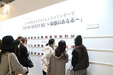 来場者の投票によって順位が決まる「アートチップアワード」の応募作品の展示。今年のアートチップテーマは「JAPAN TEXTURE ~湿感のある赤~」。熱心に作品をご覧になる方が多く、関心の高さがうかがわれました。