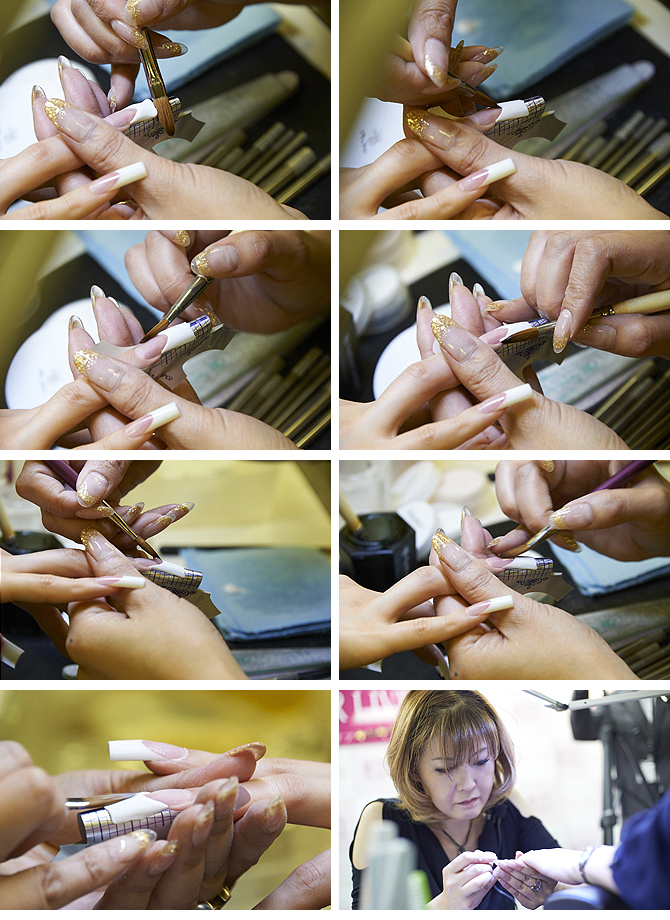 後半実演されたのは、フレンチスカルプチュア。こちらでもモデル選びの大切さを伝えてくれました。 太田さんが特に好きだというフレンチスカルプチュアでは、10年間同じ方がモデルをされているそうで、その爪の育成も折り紙つき。中指のネイルベットは、1.6~7㎜から2㎝まで伸びたという事です。